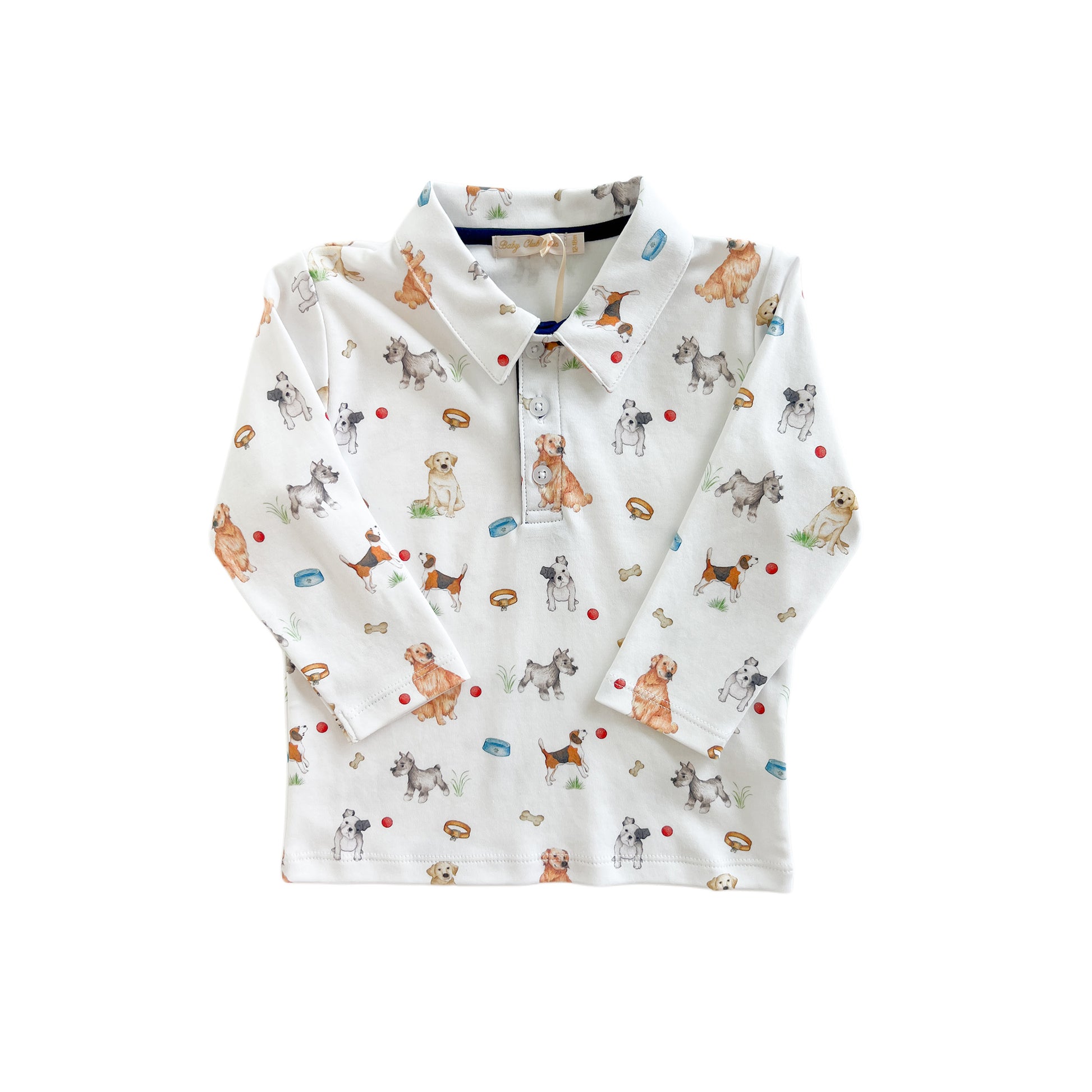 The Best Friends Polo is made from the softest pima cotton and features a sweet puppy dog theme print. It will be a favorite in your little man's closet. Pair it with our Navy Terry Pants or Green Terry Joggers for the perfect outfit.