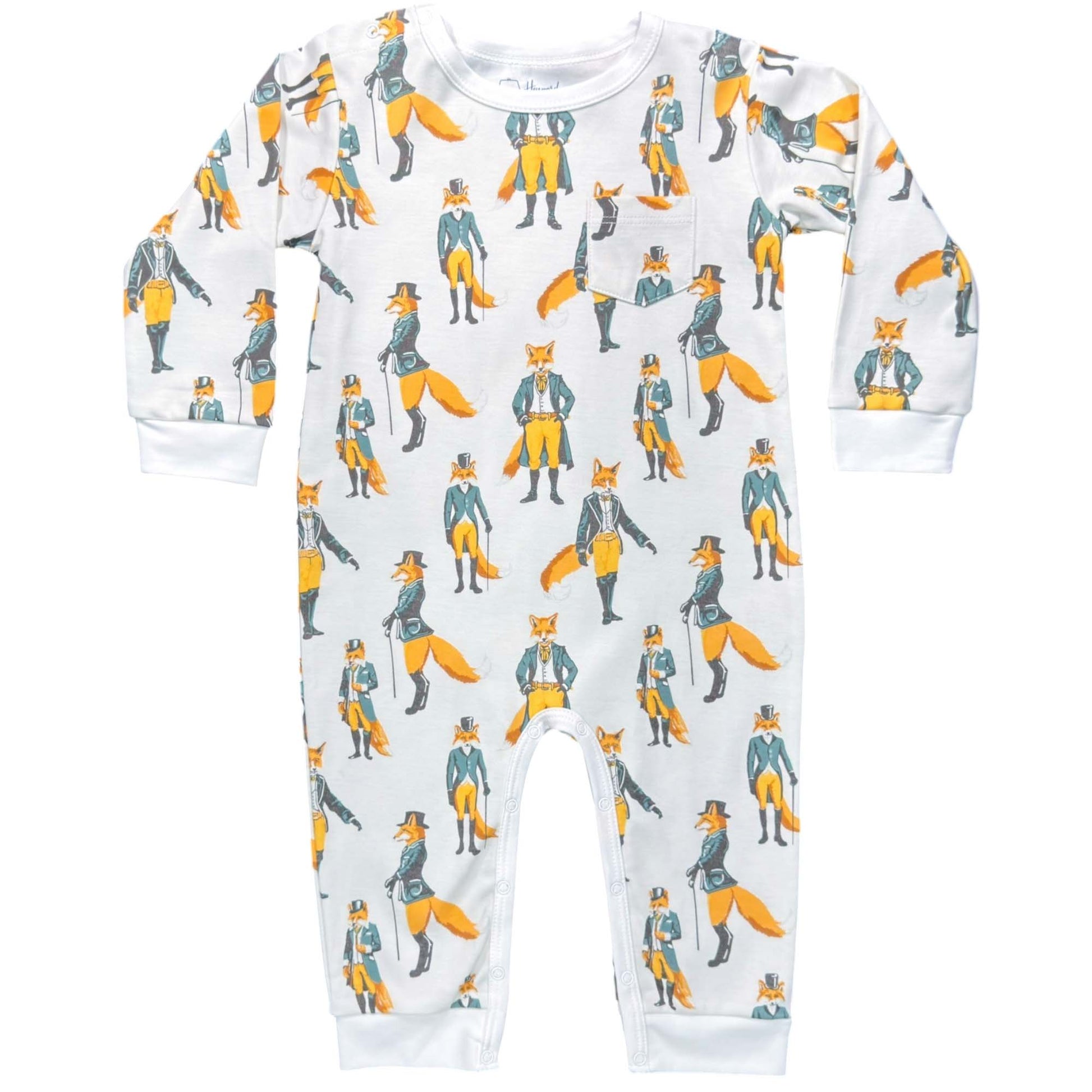 Is there a more fun print for your little boy?! Your little one will be comfortable and adorable in this long playsuit romper. Made from Pima cotton with button closures for easy diaper changes.