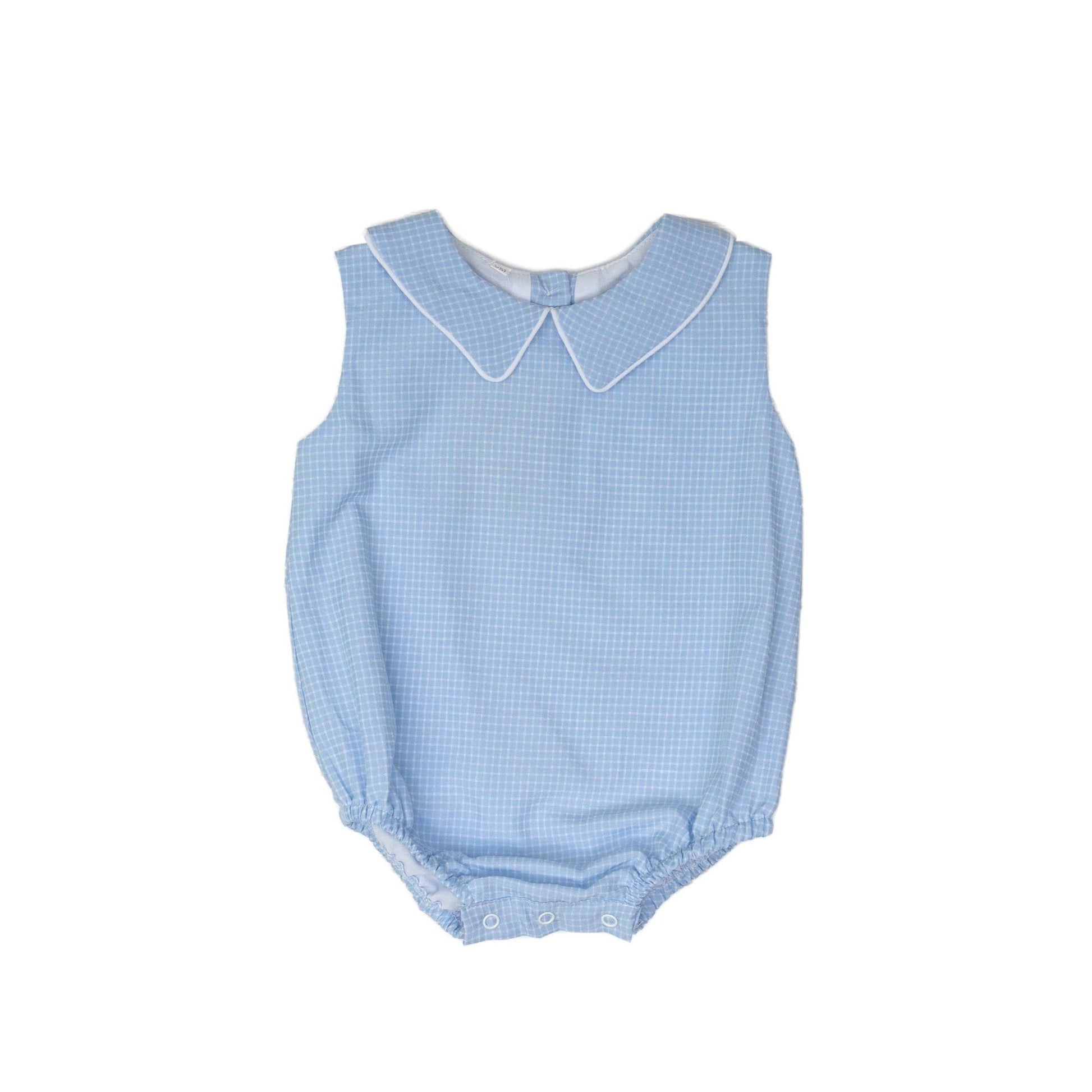 This blue checked bubble is a classic with piped collar and lined body. The cut is true to size size up for more wear. Fully lined. For best care, we recommend washing on gentle cycle with like colors, hang to dry.