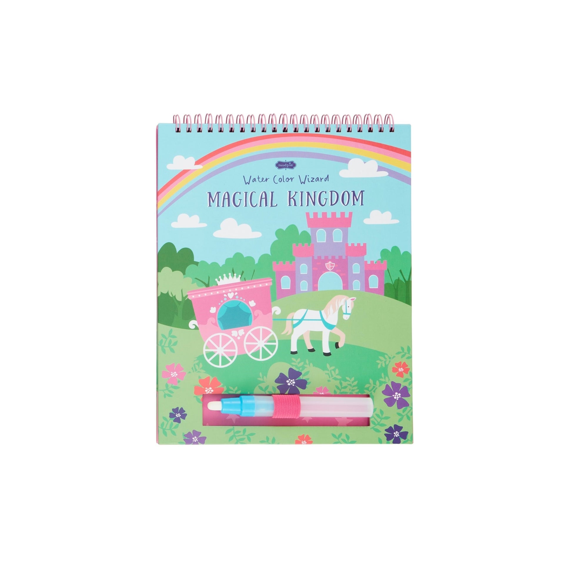 Details: water-activated color changing book, includes refillable water pen, reusable mess-free coloring, magical kingdom theme, perfect gift for kids.