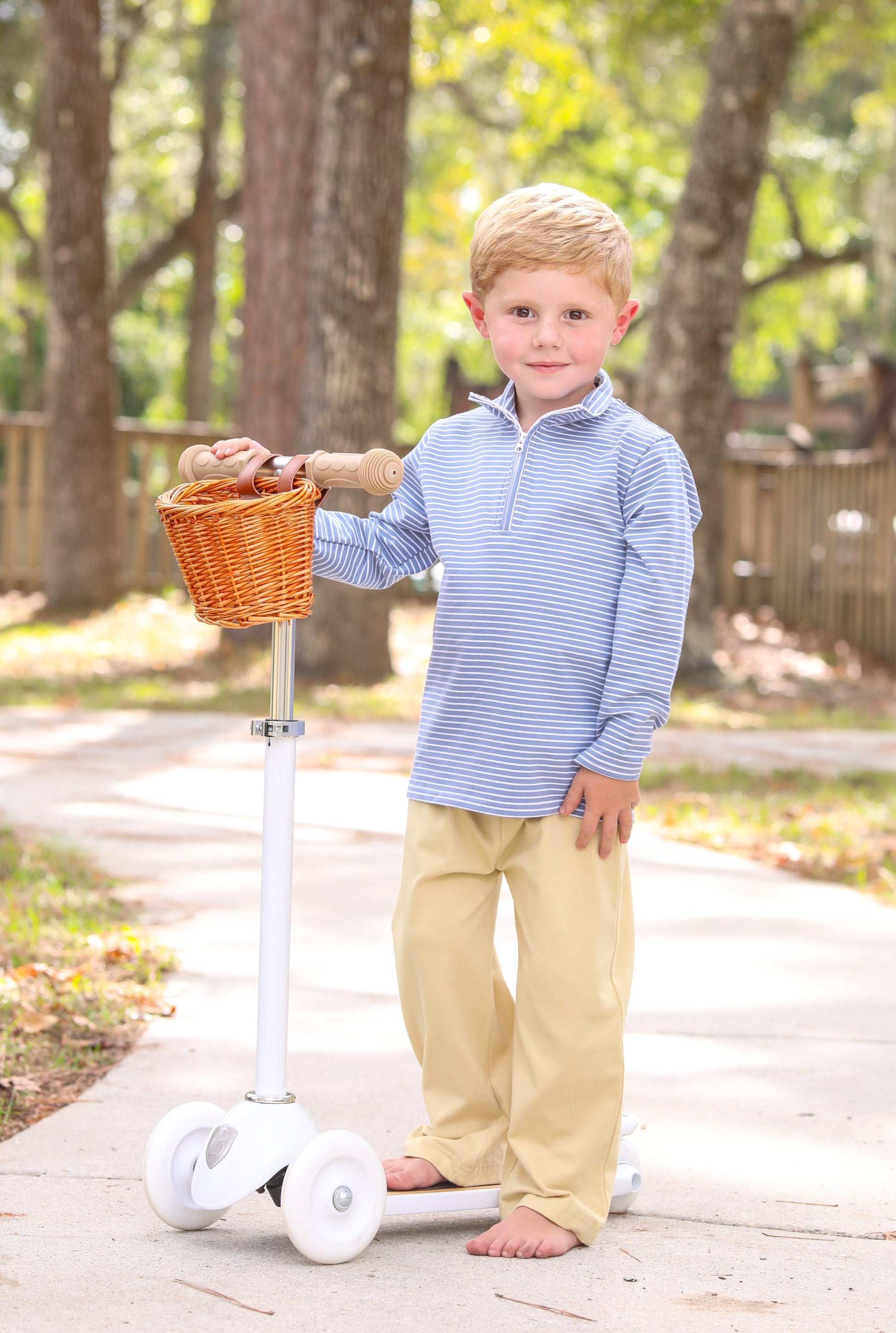 Cozy, cool, and effortlessly classic — the Tucker Pullover in Slate Blue is the perfect layering piece for your little guy. Featuring a slate blue and white stripe pattern, this long-sleeve pullover is designed with a quarter-zip front and stand-up collar for easy on and off. Made from soft cotton knit with a hint of stretch, it’s great for transitioning through the seasons with comfort and style.